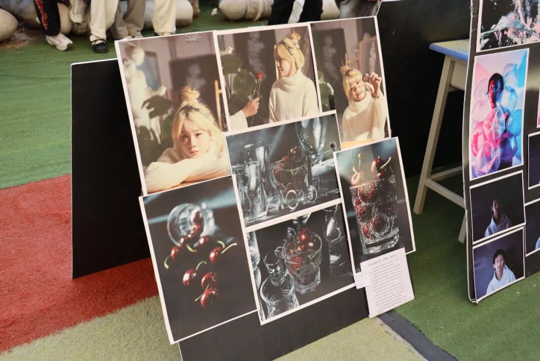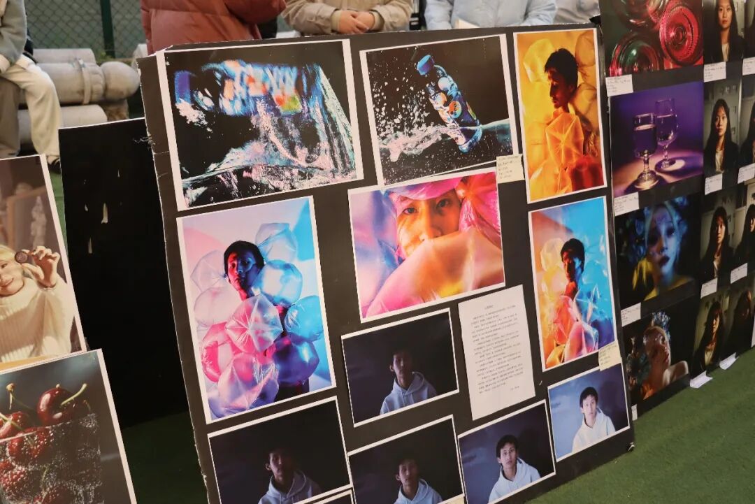 移步2023级摄影结课展区,瞬间被满墙震撼影像“吸睛”。镜头里,是各种各样的同学或模特的照片,光影对比尤为夺目,熠熠生辉,明暗交界线锐利分明,似划分出两个风格迥异的世界。微距之下,校园角落无名小花的花蕊娇嫩欲滴,晨露晶莹,尽显自然微观之奇。人文纪实作品直击人心,记录社区老人笑容、孩童嬉闹,满是烟火温情;创意摄影脑洞大开,超现实场景搭建,时空交错感拉满,彰显出了同学们成熟技法与不羁创意。