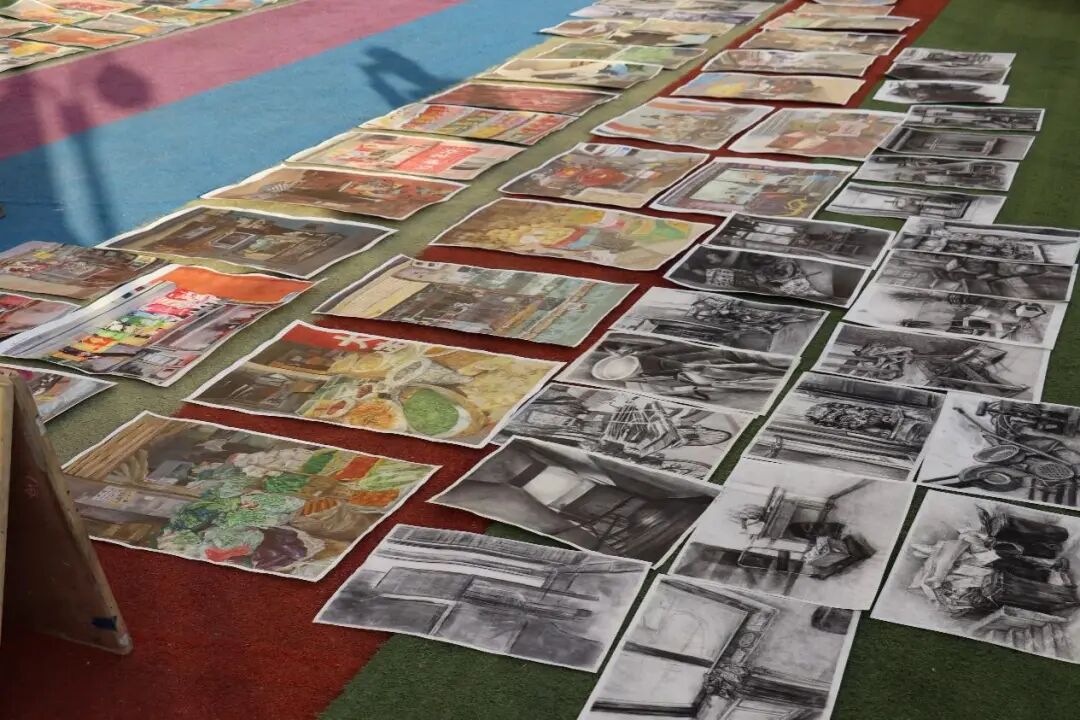 步入2024级素描色彩结课汇报展区,仿若踏入一个个奇幻的微观宇宙。同学们以细腻笔触,精准勾勒出静物的硬朗轮廓,明暗交织间,静物之美跃然纸上;或以光影交加的氛围勾勒出斑驳陆离、如梦似幻的素描风景,尽显幽然。色彩作品明艳动人,在一幅幅作品中,小街市场的烟火气,于细腻描绘中鲜活呈现:老店铺招牌的斑驳色彩,历经岁月却神韵犹存,棕红漆字、暗金镶边,写实笔触还原每处;小吃摊主娴熟颠锅,热油溅起的金黄、食材翻炒的褐红,定格成最诱人的日常烟火。同学们用画作诉说着对生活、对美学的感悟。