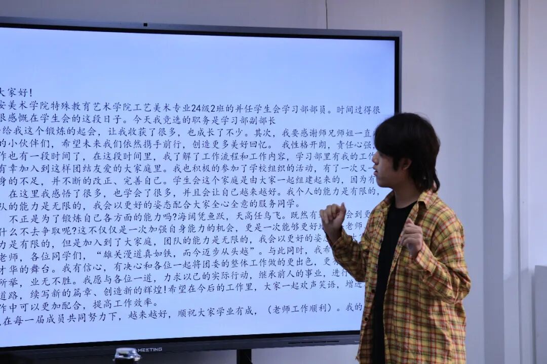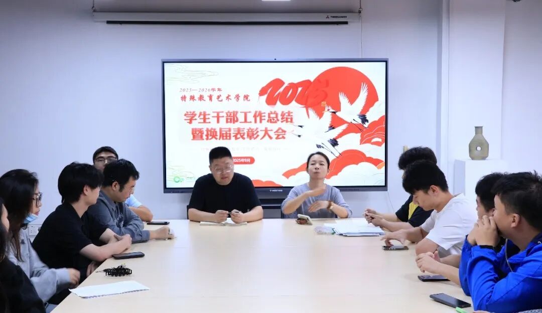 2025年9月12日,西安美术学院特殊教育艺术学院团总支、学生会进行学生干部工作总结暨换届表彰大会。团总支书记、辅导员以及学生干部50余人参加此次会议。此次会议,是对我院上一学年学生工作的总结与反思,更是为我院新一学年的学生组织注入新鲜血液。