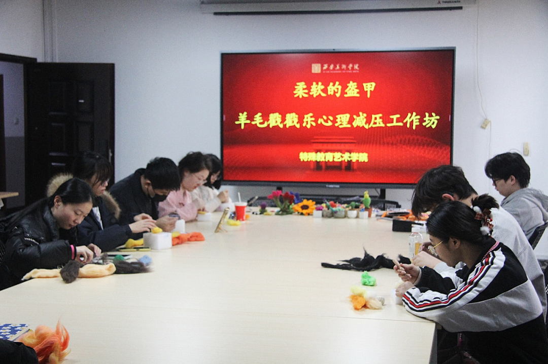 为帮助学生缓解学习焦虑、释放心理压力,引导大家建立健康积极的心理状态,11月14日,西安美术学院特殊教育艺术学院举办“柔软的盔甲”羊毛戳戳乐心理减压活动,师生20余人共同参与。