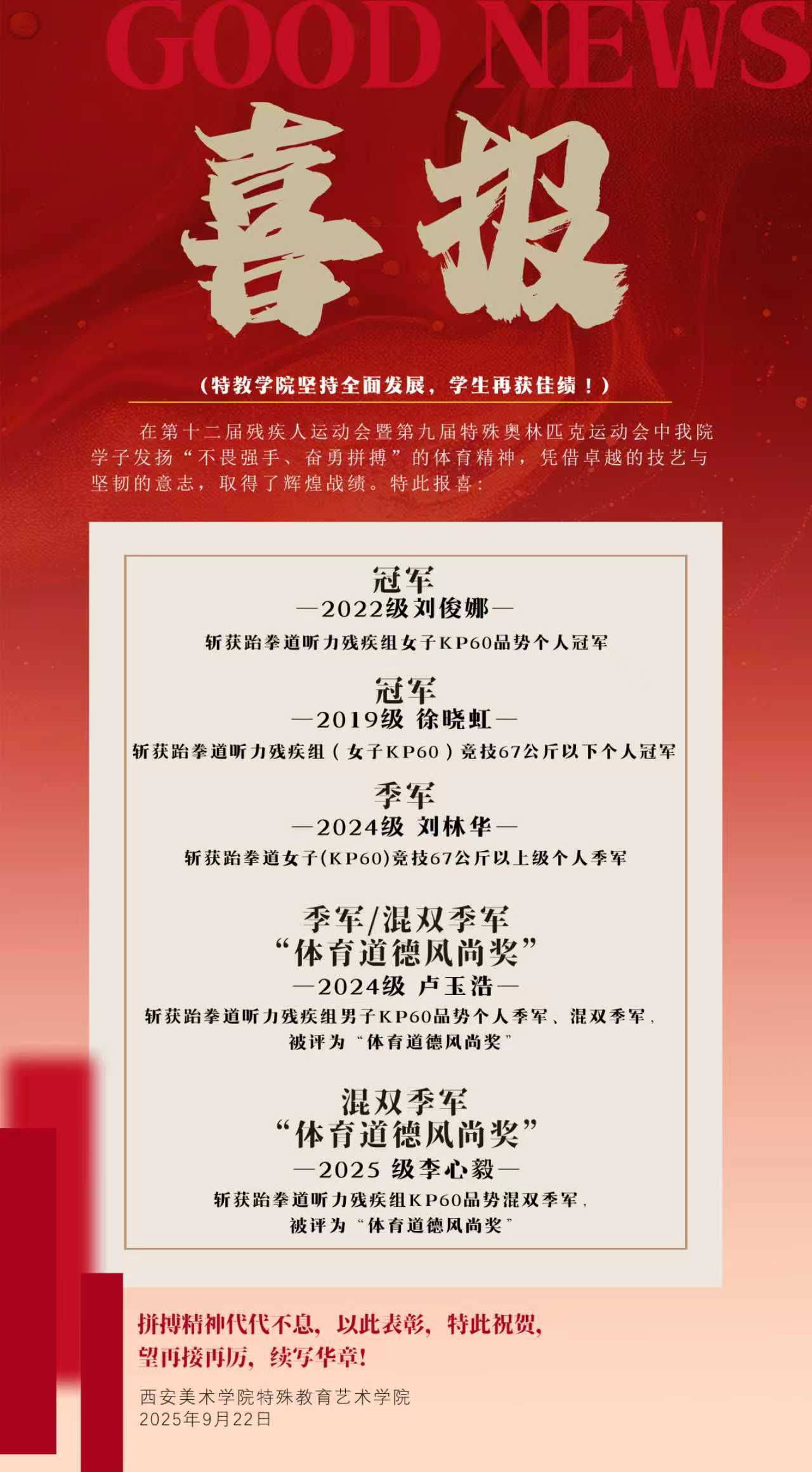 喜报|特教学子在第十二届残疾人运动会暨第九届特殊奥林匹克运动会中再创佳绩