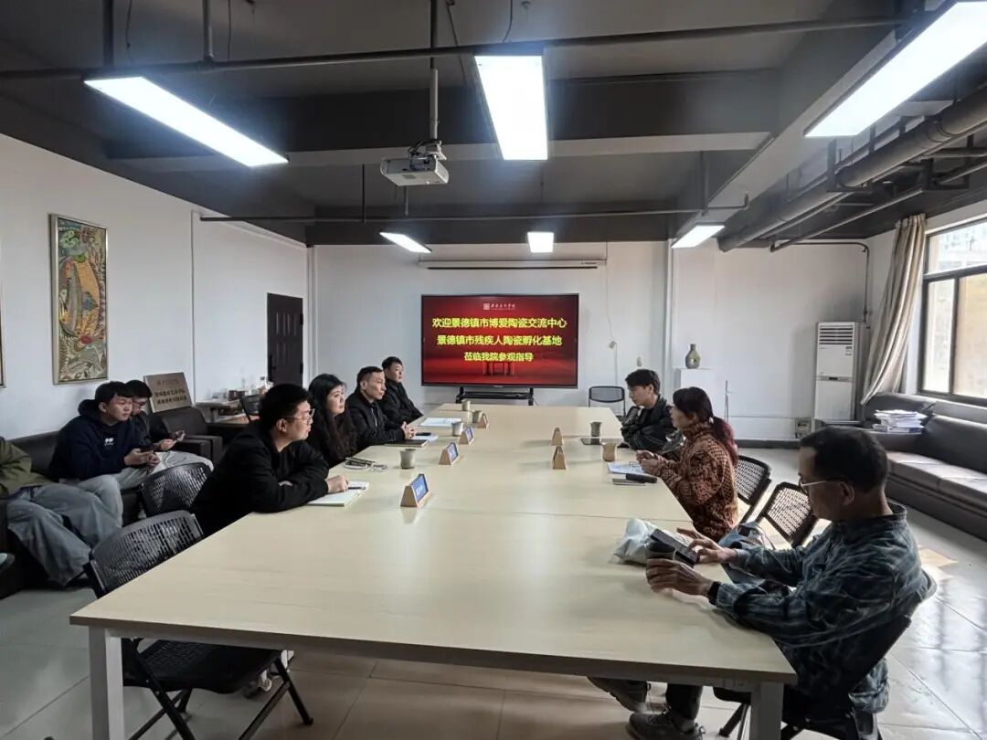 为深入推进“访企拓岗促就业”专项行动,搭建校企合作新桥梁,近日,景德镇博爱陶瓷文化交流中心一行应邀到访西安美术学院特殊教育艺术学院,通过企业宣讲、协议签署、基地授牌等系列活动,开启校企协同育人、助力学生高质量就业的新篇章。博爱陶瓷文化交流中心总经理杨英霞、副总经理黄火云,特教学院院长李黎,就业专干崔兴中、印敏娟及毕业班20余名学生参与此次活动。
