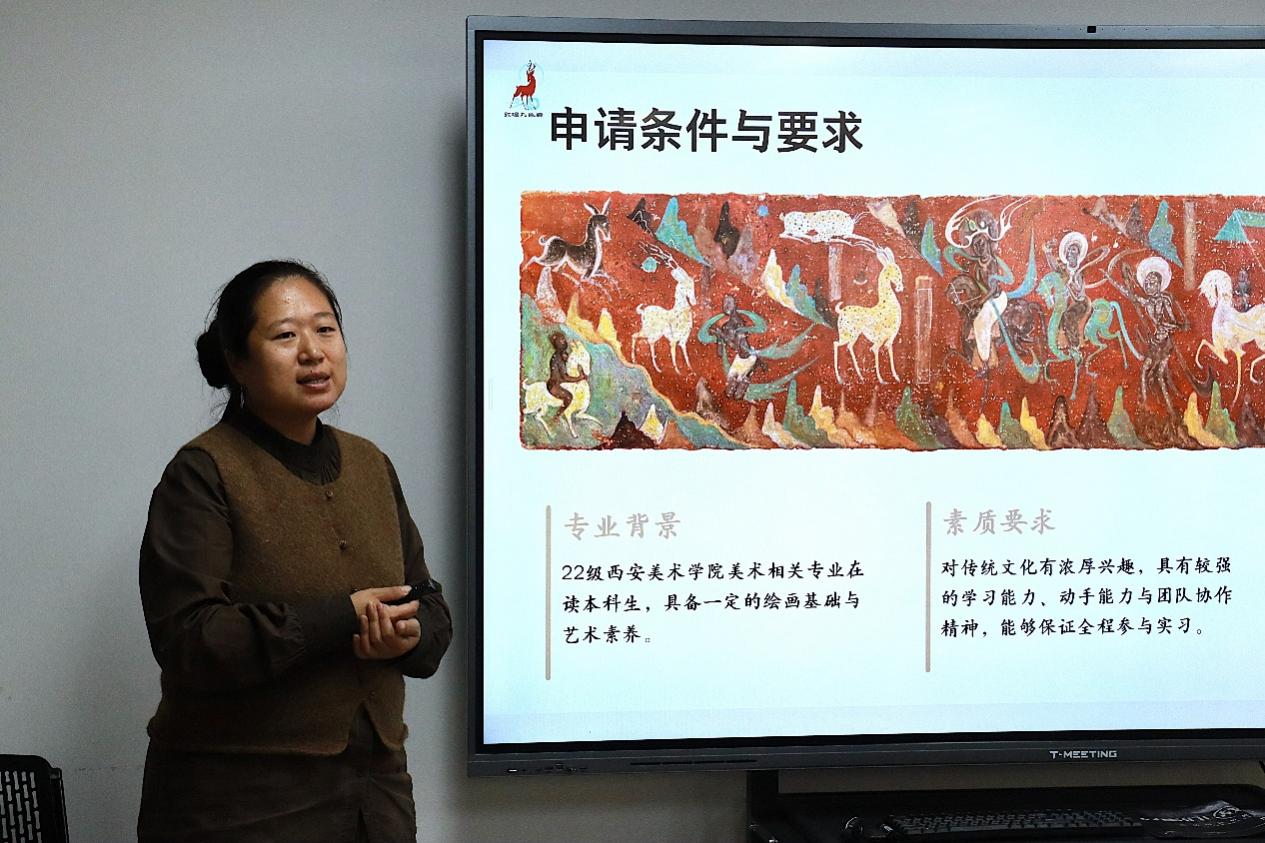 为深化校企合作纽带,推动非遗文化传承与特殊教育艺术实践深度融合,切实落实学院访企拓岗“请进来”专项工作部署,11月21日,西安美术学院特殊教育艺术学院特邀敦煌市岩彩壁画艺术学会侯青红、宋青两位老师,开展以学生实习与就业为核心的专场宣讲活动,开展一场敦煌文化与职业发展的对话,我院2022、2023级师生共计100余人参加。